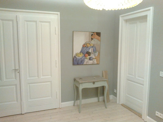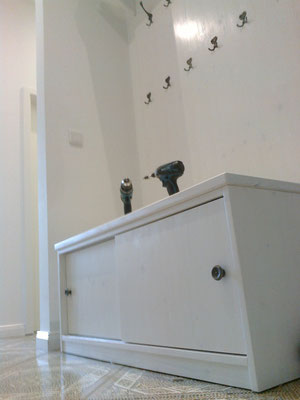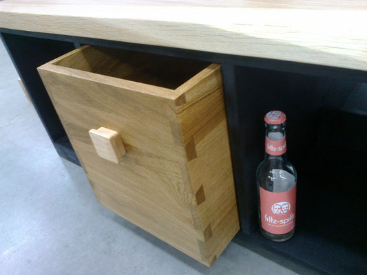 Unter anderem wurde die Schublade neu angefertigt, die Türen neu angeschlagen, die Oberfläche erneuert, die Füße angefertigt